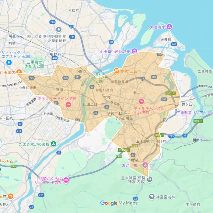 伊勢では2025年4月14日から新しくサービスが始まったばかりです。対象となるエリアの範囲は以下のマップをご覧ください。